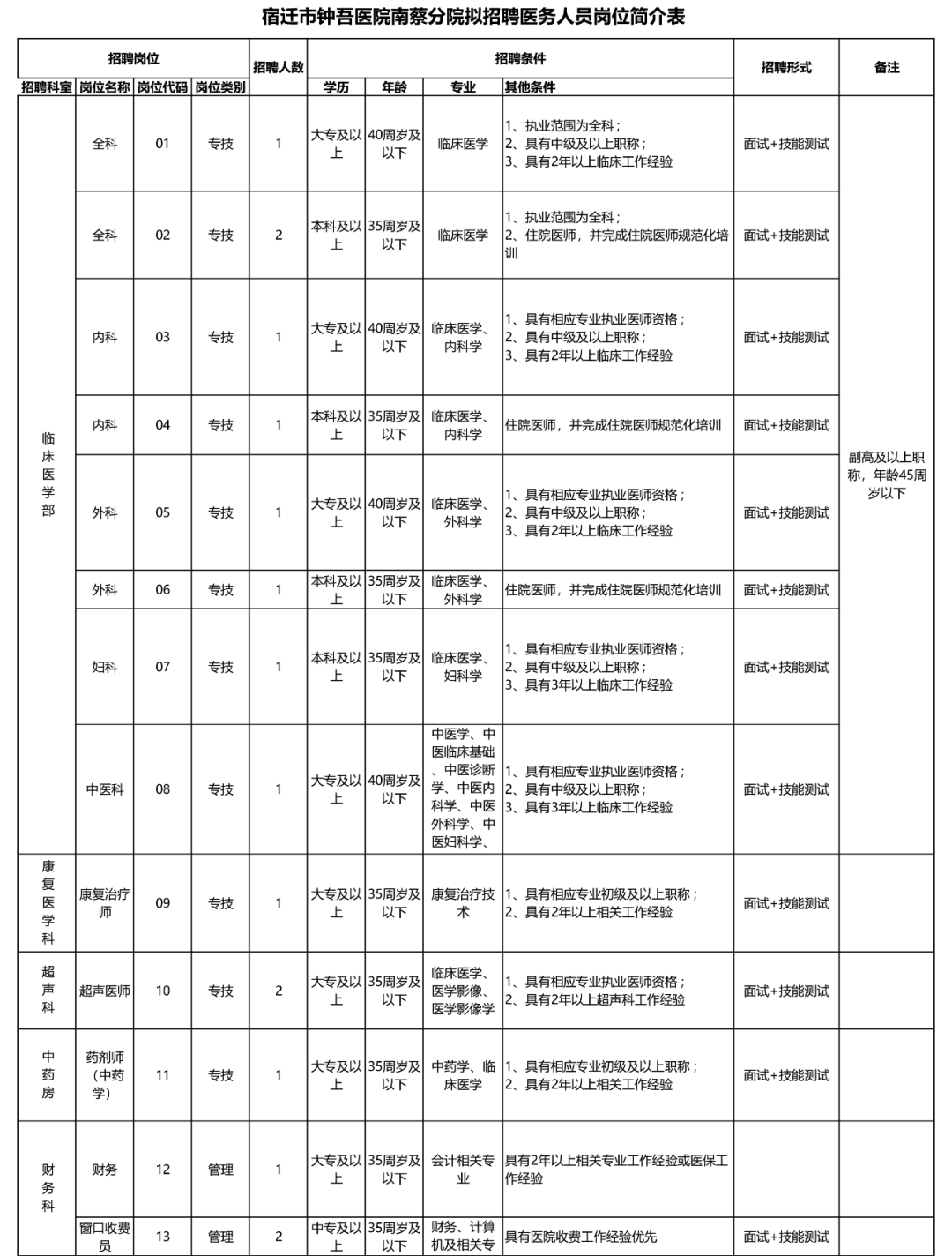 宿遷市鐘吾醫(yī)院、宿遷市康復醫(yī)院校園招聘研究生人才公告
